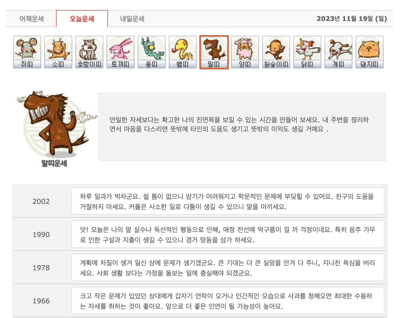 새해 전에 저도 심심풀이로 운세에 관심있게 찾아보는 편입니다.